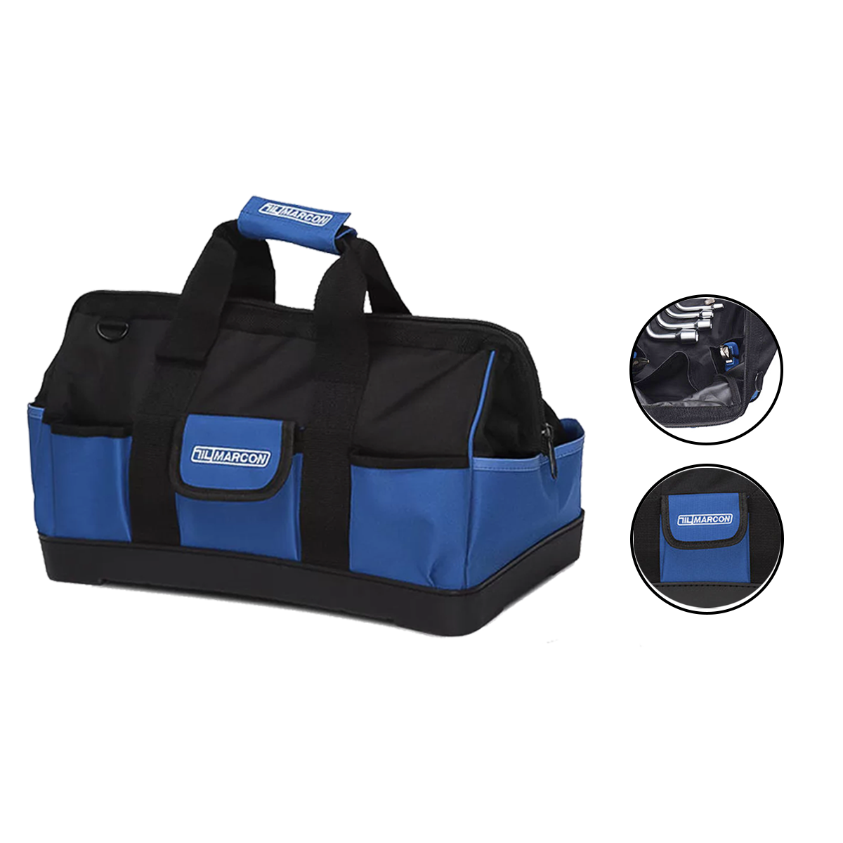 As bolsas para ferramentas Marcon, são práticas, versáteis e resistentes, foram projetadas para acondicionar e transportar ferramentas organizadamente, suas alças fixas possuem acabamento interno que oferecem conforto durante a movimentação e deslocamento. As BF’s possuem diversos compartimentos que são essenciais na organização das suas ferramentas, com amplo espaço interno. Possui um acabamento resistente em seus vértices internos e externos que asseguram a sua ampla capacidade de acondicionamento de ferramentas e componentes, suas laterais têm abertura total que proporcionam uma visualização completa do interior da bolsa.