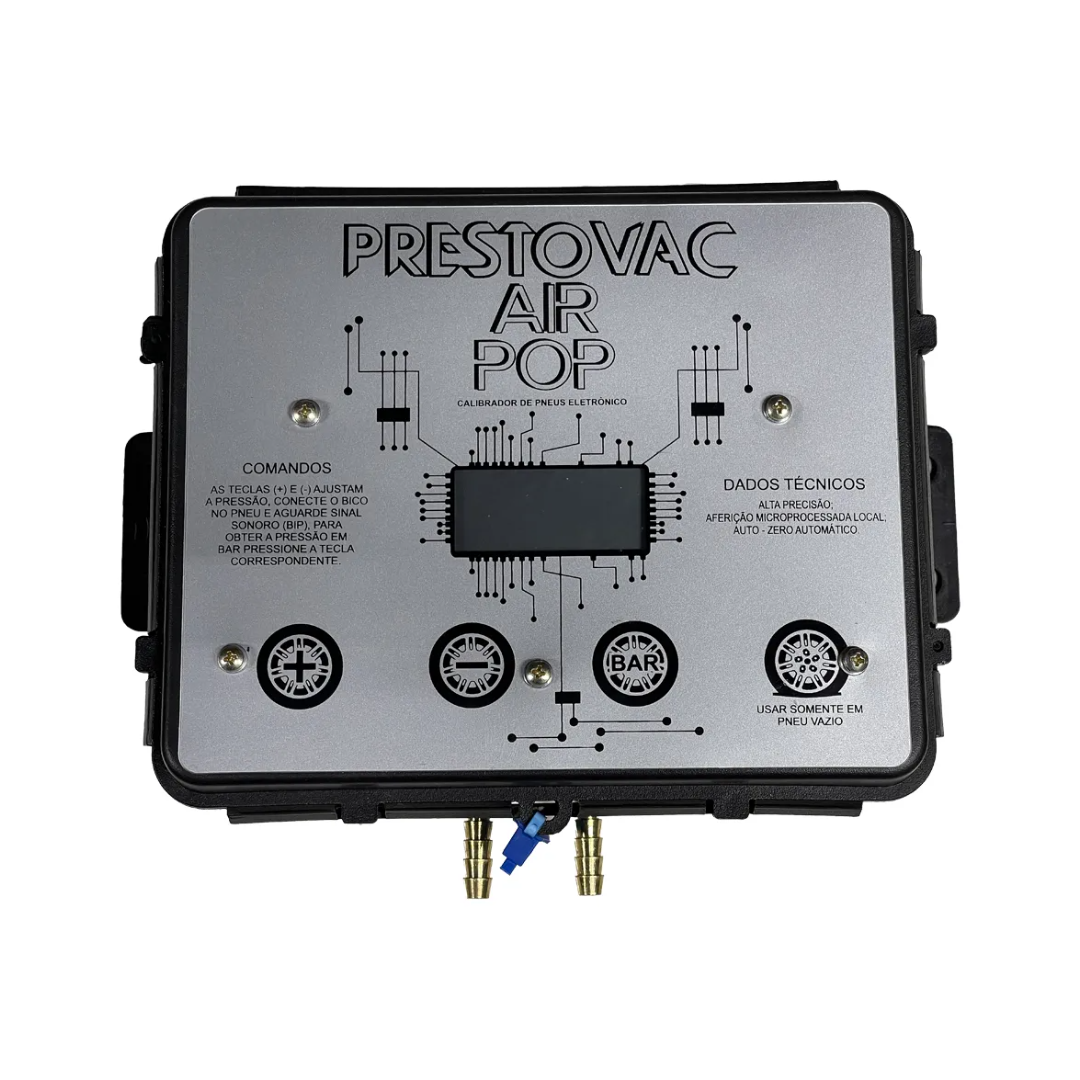 O Calibrador de Pneus facilita a instalação em empresas, estacionamentos, postos de combustíveis e auto serviços. Indicado para veículos de passeio, motocicletas, caminhonetas e para linha pesada, tais como caminhões e ônibus. O gabinete do equipamento é fabricado em alumínio fundido. Com mais de 20 anos de tradição no mercado a Prestovac hoje fabrica um dos equipamentos líderes no segmento.