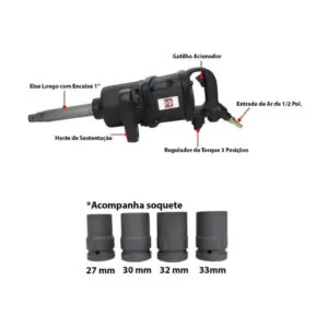 Indicado para operações de aperto e desaperto de parafusos e porcas de rodas de caminhões e ônibus ou situações onde a demanda é de altísssimo torque como manutenção de tratores, montagem e desmontagem de torres de energia e arquibancadas, feixes de molas e chassis de veículos pesados.