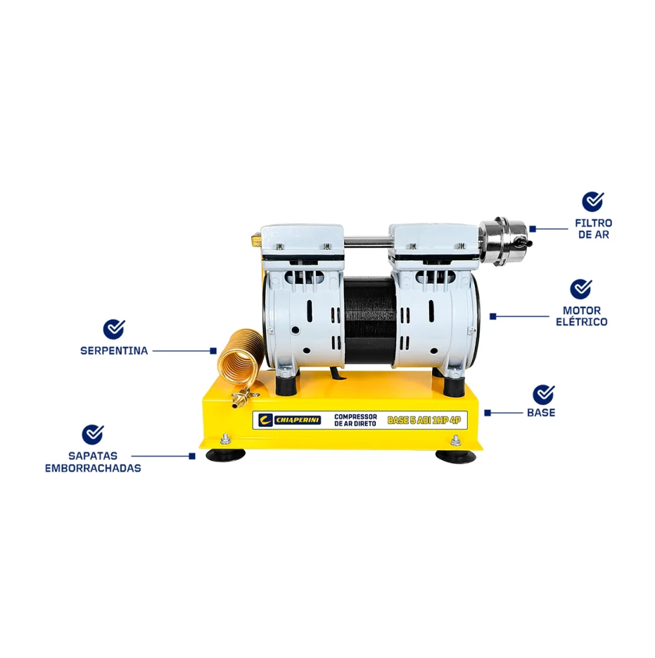 Compressor de Ar Chiaperini Isento de Óleo Base 5 AD 1HP 120lbf 220V