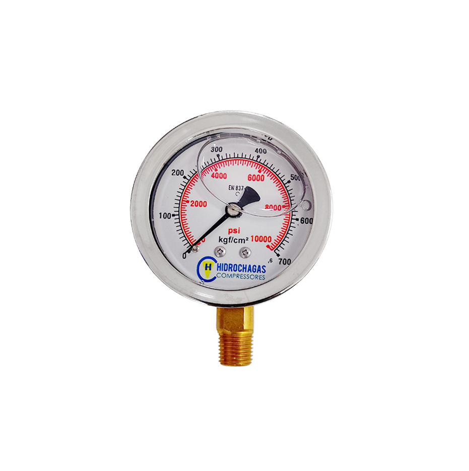 Manômetro de Pressão 1/4″ NPT Vertical 700 Bar 10.000 psi Com Glicerina